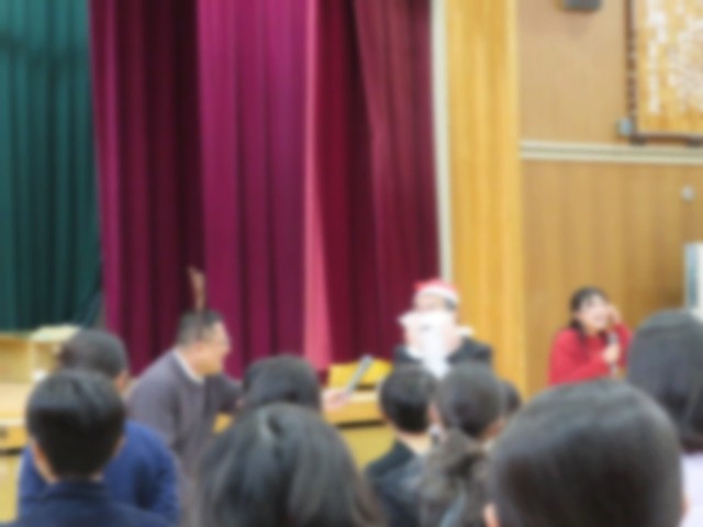 12月の音楽朝会では、「赤鼻のトナカイ」を全校で歌いました。
