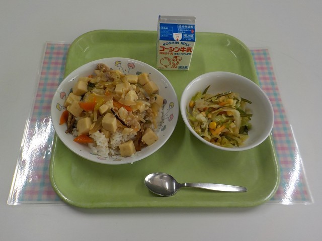 今日は、豆腐の中華煮をごはんのうえにかけて食べるようにしました。