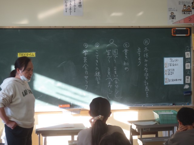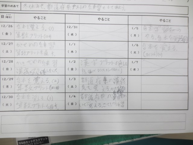 本日たてた計画をもとに冬休みの間、学習します。そして、冬休み明けに、その振り返りを行います。