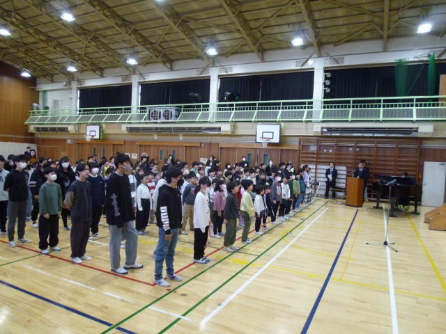 本日、2学期終業式を行いました。まず、校長先生からお話がありました。①普段の学習を活かして行事に取り組めたこと。②凡事徹底ができたこと。③3学期に元気に登校すること。の3つでした。次に、校歌を斉唱して終わりました。その後、スクールガードの方に、感謝の気持ちを伝えました。最後に、生活指導の先生からお話がありました。「板橋第二小学校の皆さんにサンタクロースから『安全』『笑顔』『相談』の3つのプレゼントがありました。これらを大切にして、楽しい冬休みを過ごしましょう。」というお話でした。
