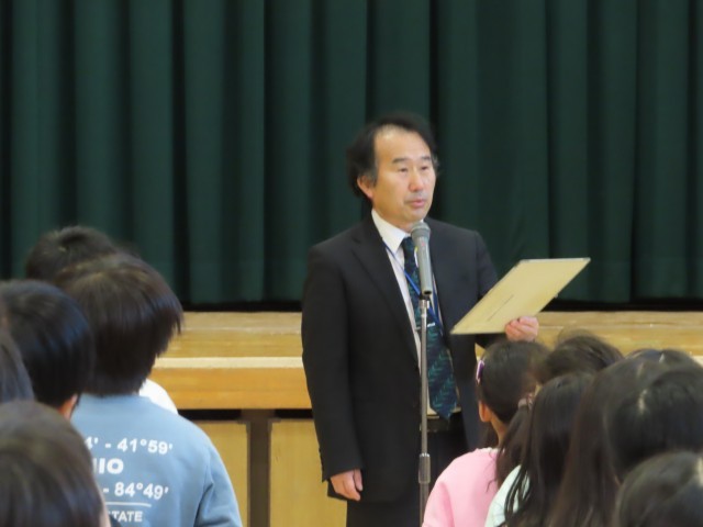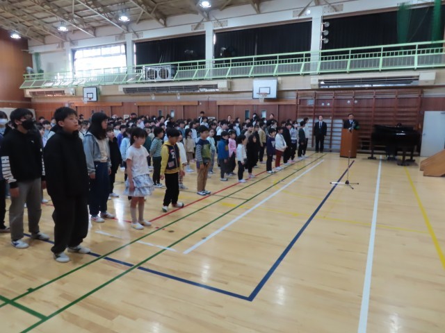 本日、3学期始業式を行いました。校長先生から、「①皆が元気に登校できて良かったこと。②1年間、大きな怪我や事故が無いように、気を付けて生活すること。③3学期は、短いので1日1日を大切にして、今の学年のまとめと次の学年の準備をすること。」のお話がありました。最後に校歌を斉唱して終わりました。落ち着いた雰囲気の中で、式を終えることができました。