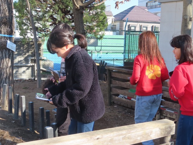 校庭に出て、冬ならではの自然の様子を観察しました。