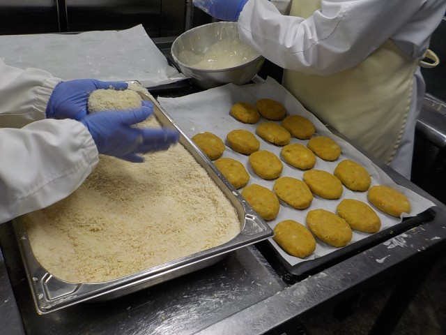 給食室の方々は、早出をされ、朝一番でコロッケづくりをされていました。