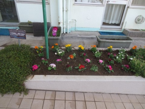 本日、学校を支えてくださる地域の方々が、第一ビオトープ前の「コミュニティガーデン」をきれいに整えてくださいました。