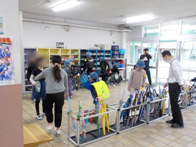 今日は雨に備えて傘を持っての登校となりましたが、6年生が1年生について、靴箱の入れ方や慣れない傘立ての使い方を、優しく教えてくれました。板二小では、1年生教室と6年生教室を隣同士に設定しています。6年生は1年生を色々な場面でフォローしてくれたり、最高学年としてお手本を見せてくれたりしています😊✨