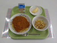 フィッシュバーガー 牛乳 白菜スープ みかん