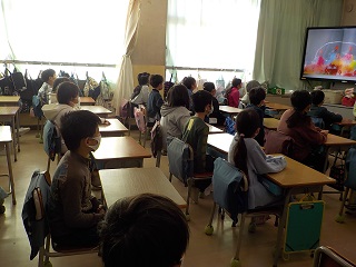 今日の朝の読書の時間の様子です。図書委員会の5・6年生が読み聞かせをしてくれました。