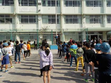 この言葉は、板橋区二丁目町会のスローガンです。先日行われたiCS委員会で話題になり、あらためて大切なことであるということから校長先生が全校児童に伝えました。