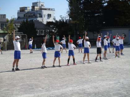 砂埃が舞う中、一生懸命練習しています。 いよいよ明日は本番です。