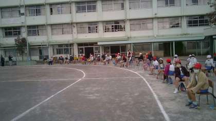 いよいよ板二オリンピックがはじまりました。開会式では、1年生がはじめのことばを上手に言いました。
