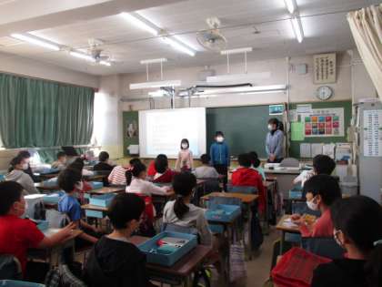 今朝の4年生の様子です。1時間目の図工の用意をしています。