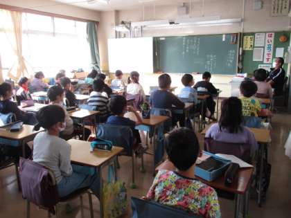 放送による児童朝会でした。今週の目標は、「友達と仲良く過ごそう」です。子供達は校長先生のお話しを真剣に聞いていました。