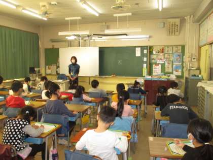1年生の朝の様子です。昨日の体育のマット運動の振り返りをしていました。