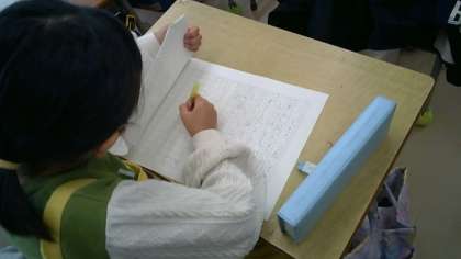スタディアップの視写に取り組んでいました。1年間続けてきた成果が着々と現れています。全員集中して取り組んでいました。