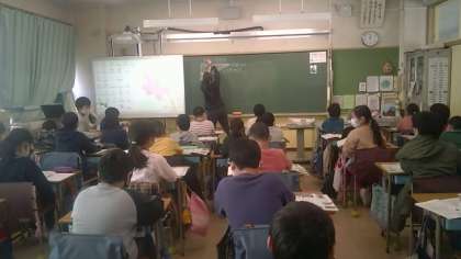 4年生の社会の様子です。小笠原村が世界自然遺産に登録されるまでの取り組みについてまとめる活動をしていました。