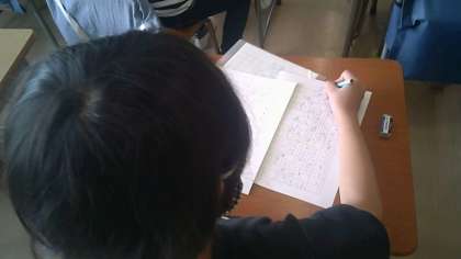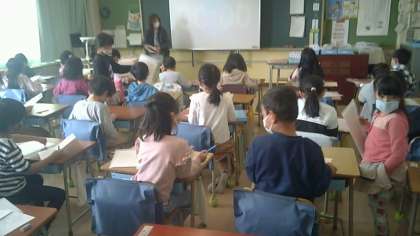 1年生の朝の様子です。スタディアップタイムに取り組んでいました。