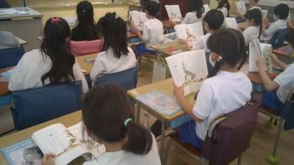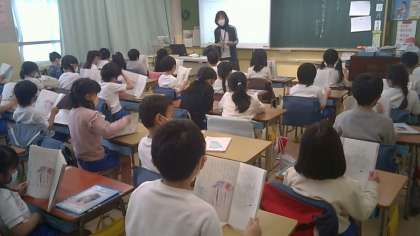 1年生の国語の様子です。先生の「スイミー」の範読を聞いていました。