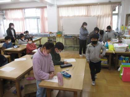 図工の学習では、いろいろな動物を組み合わせた生きものを考える活動に取り組んでいました。それぞれに想像力を働かせ、一生懸命に活動していました。
