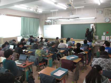 タブレット端末を使って、計算練習に取り組んでいました。出した答えの正誤がすぐに分かるので、子供たちは次から次へと問題に挑戦していました。