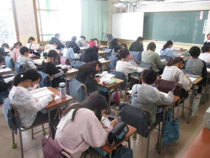 5年生は伝記を読んで感想文を書く活動に取り組んでいました。全員集中していて、教室には鉛筆の音しか響いていませんでした。
