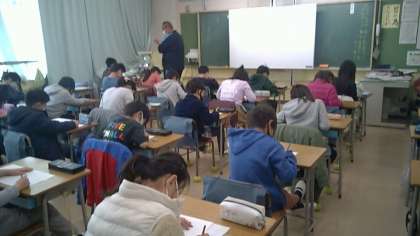 今朝はスタディアップでした。視写の活動も62回目となり、決められた時間内に書くことができる量も着実に増えてきています。