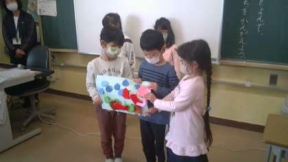 今朝の1年生の様子です。かざり係さんが作ってくれた折り紙の飾りを皆で見ました。とてもよくできていて、頑張って作ってくれたことが伝わりました。