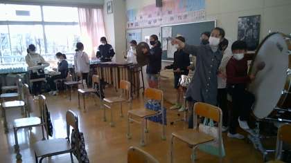 5年生の音楽の様子です。「威風堂々」を個人練習し、その後全体でテンポに気を付けてゆっくりと練習をしていました。
