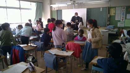 3年生の朝の様子です。新しいタブレット型PCを使うための、QRコードの配布が行われていました。大事に管理をしてください。