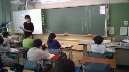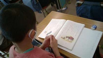4年生の国語の様子です。先生の範読を聞いて、教科書の中の大事だと思う文章に線を引いていました。