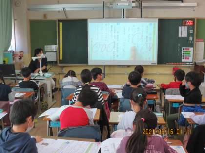 2年生の国語の様子です。先生の解説を聞きながらテスト直しに取り組んでいました。