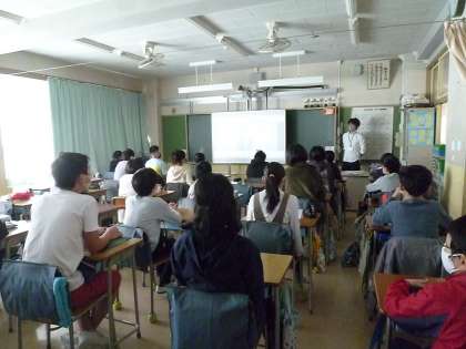 今日の副校長先生の話は「電車内の空き缶の、ある若者の行った素敵な行為」についての話でした。副校長先生からは、「誰かが見ていなくてもゴミを拾ってゴミ箱に捨てるという行為が出来ると良いです。人のために奉仕することの原点は、案外身近なところにあります。」というお話でした。