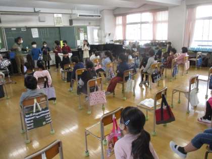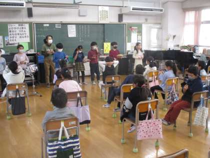BGMに合わせて打楽器の演奏を行いました。曲のテンポに合わせながら上手に演奏することができました。