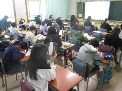 漢字のたしかめテストに取り組んでいました。学年が上がるにつれて難しくなっていく漢字ですが、全員集中して丁寧に取り組んでいました。