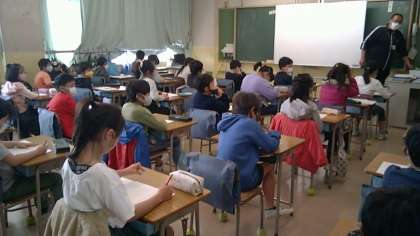 3年生のスタディアップタイムの様子です。65回目の視写タイムに取り組んでいました。