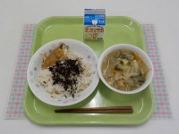 ・牛乳・ごはん・ひじきふりかけ・魚のみそだれかけ・根菜汁『魚のみそだれかけ』は、白みそと赤みそ、しょうが、しょうゆ、さとうなどでつくったタレをかけてあります。甘めのタレが魚によく合っていて、おいしくで...
