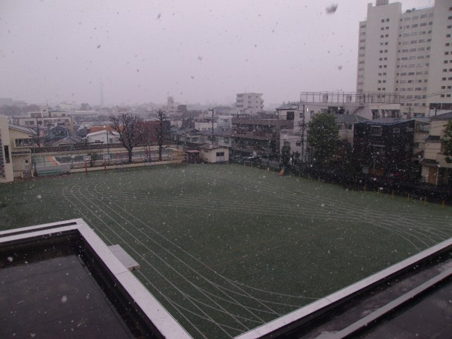 この勢いだと、一面真っ白な校庭になりそうです。