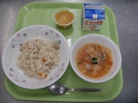 本日の給食 ・牛乳 ・夏野菜カレーライス ・コールスローサラダ