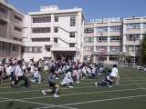 雲一つない青空 初夏のような気温 今年度最初の体育朝会 2年生以上は校庭 1...