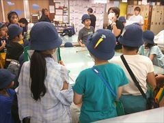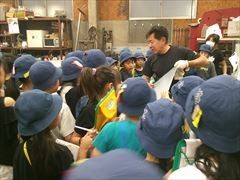 社会科「工場ではたらく人と仕事」では、地域の看板工場「アイ工芸」に見学をしました。固い鉄の板をいとも簡単に切ったり折ったりできる機械や、ステンシル加工の実技などを見学させていただきました。地元に優れた技術をもつ工場があることを知り、総合的な学習の時間では「ものづくり板橋」について探究していきます。