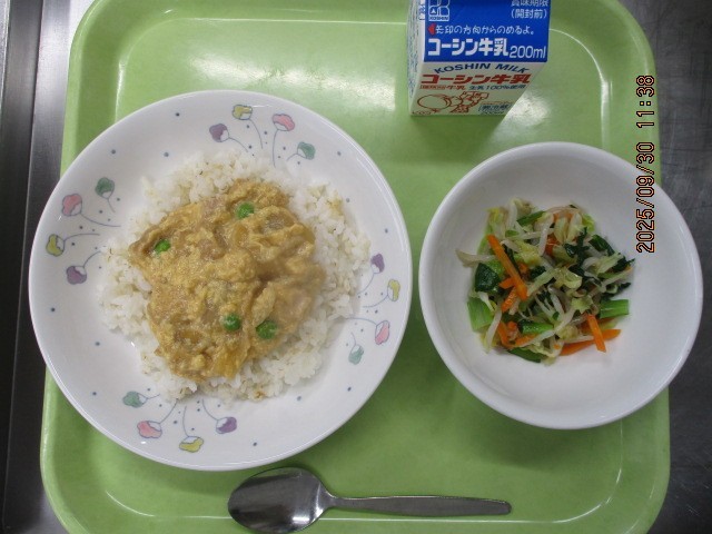 あぶたま丼 野菜のにんにくしょうゆドレッシング 牛乳
