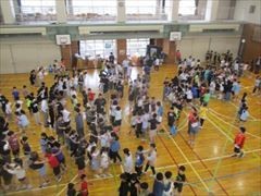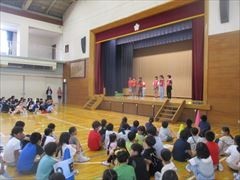 10月2日(木)の朝の時間に、運動委員会が発表集会を行いました。仕事内容やがんばっていることを自分たちの言葉でまとめて、発表しました。最後に全校児童で、ジャンピングじゃんけん列車でジャンプをする動きを楽しむ企画も行いました。