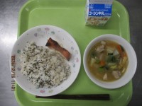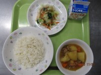 高野豆腐入り親子丼 野菜のごま酢 ミニトマト 牛乳