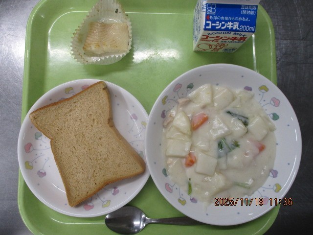 黒砂糖パン カレイのバジル焼き かぶのクリーム煮 牛乳