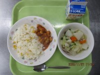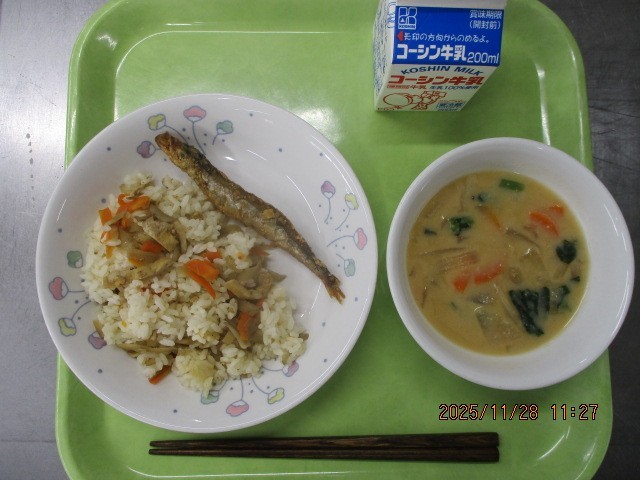 きんぴらごはん ししゃものカレー揚げ 呉汁 牛乳