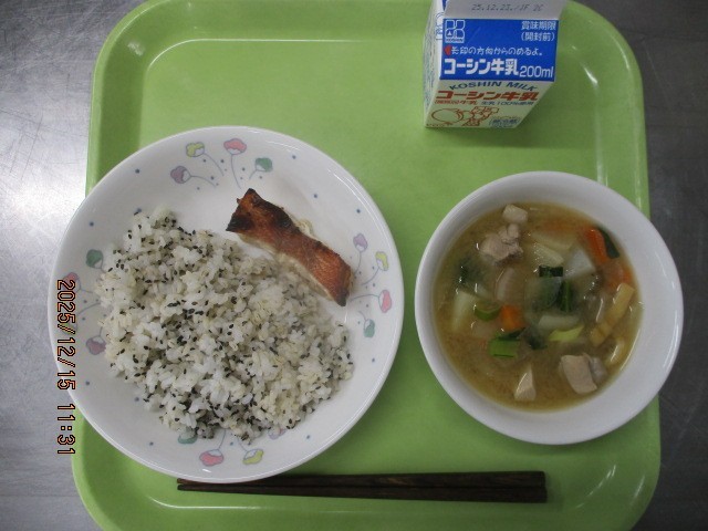 給食当番の魚担当の子が、「いい香り~」と言いながら配っていました。
