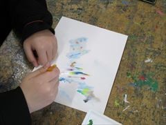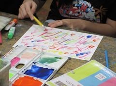 1月14日(水)に6年1組で板橋区教育会図画工作部研究授業を行いました。音楽を聴いて感じたことから絵に表す授業です。音楽を聴いたり形や色を見たりして自分が感じたことを大切にし、表現する姿がとても素敵でした。