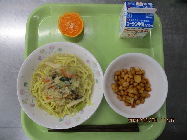 ちゃんぽん 大豆とポテトのフライ みかん 牛乳
