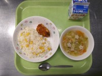 ごはん ししゃものピリ辛焼き たまごスープ キャベツのからしじょうゆ 牛乳