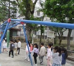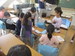 1年生は、学校を探検しながら、少しずつ学校のルールを覚えたり、休み時間には6年生のお兄さん・お姉さんと遊んだりしながら楽しく過ごしています。