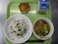 今日の給食は「コーンライス ★最上町産アスパラと春野菜のクリーム煮 美生柑」です。